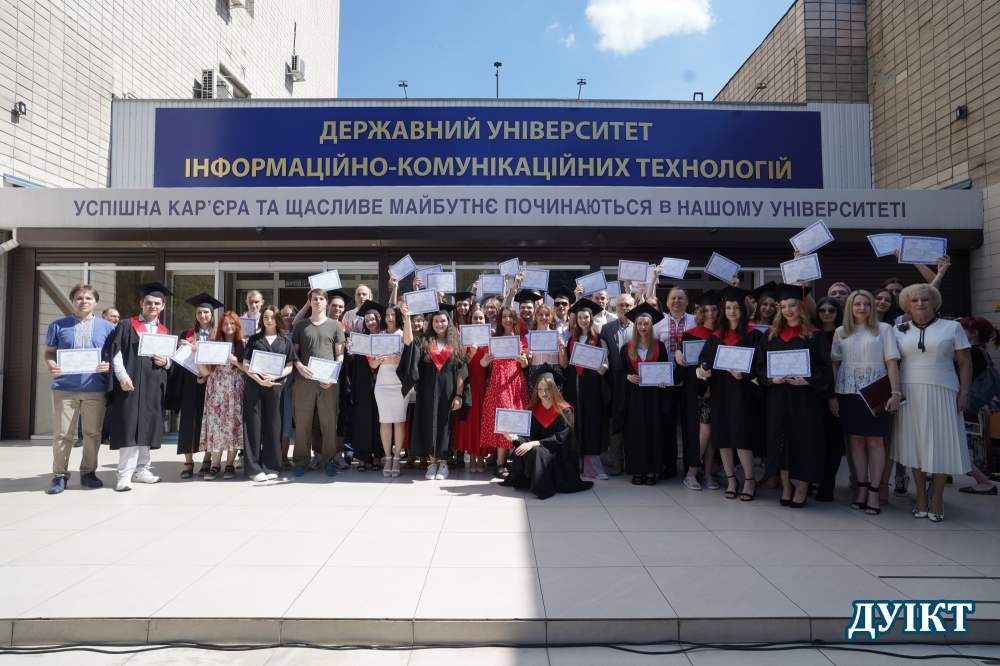 На фото: адміністрація та випускники Державного університету інформаційно-комунікаційних технологій