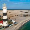 Один із найважливіших маяків Чорного моря. Знаходиться на Тендрівській косі (Херсонська область)