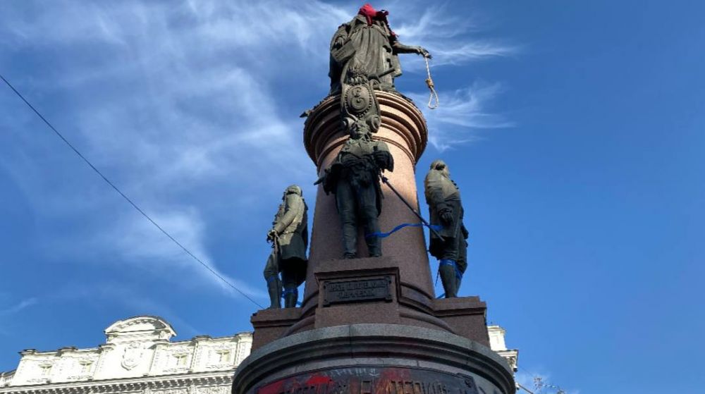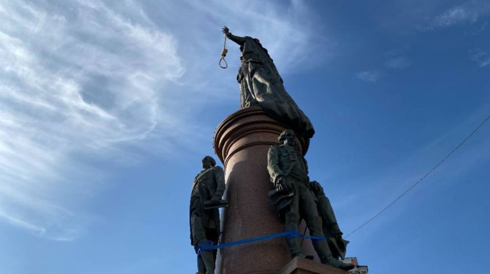 👀 На пам'ятник Катерині II в центрі Одеси надягнули червоний ковпак ката, а на руку повісили зашморг