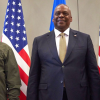 Світлина: Справа наліво президент України Володимир Зеленський, міністр оборони США Ллойд Остін і міністр оборони України Рустем Умєров у день засідання у форматі «Рамштайн». Штаб-квартирі НАТО. Брюссель, Бельгія, 11 жовтня 2023 року