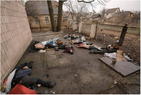 Це —Аушвіц, Сребрениця, Руанда, Геноцид ХХІ століття разом взяті! Тисячі мирних людей різного віку, діти, неповнолітні — вбиті, розшматовані, закатовані, згвалтовані (в тому числі 10-12-річні дівчатка і навіть —немовлята!), розстріляні з зав’язаними руками і очима (серед них і діти), вбиті з особливим звірячим садизмом, масові поховання по декілька сотень в одній могилі, присипаній землею. Над тілами згвалтованих і розстріляних дівчат і жінок москальські нелюди глумилися — їздили по них танками…