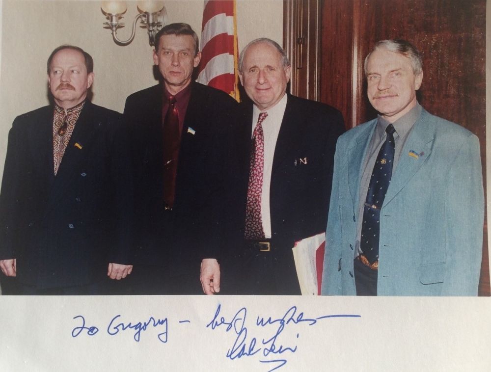 з сенатором США Карлом Лєвіним, який зробив дарчу надпис на світлині