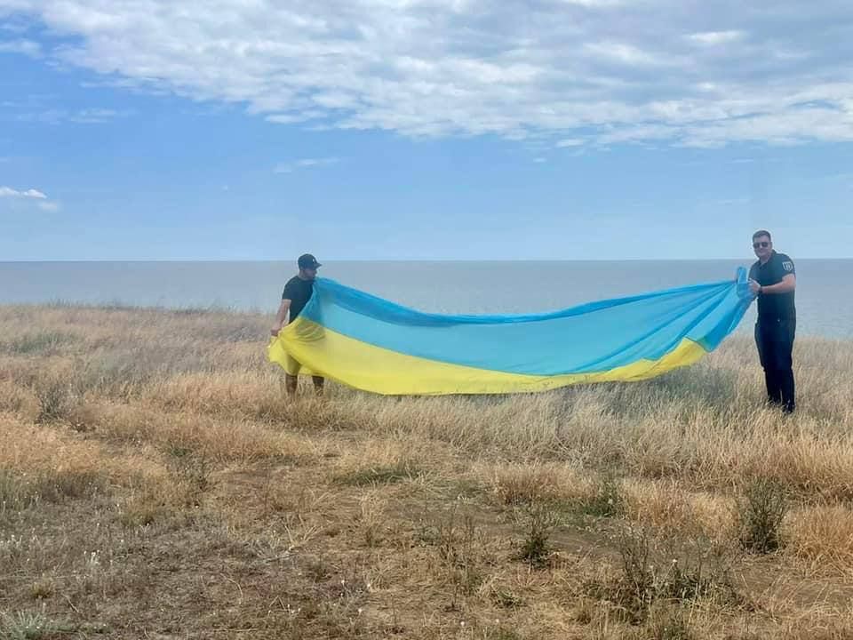 Стяг розміром 3х6 метрів передала дружня Білогородська громада Київської області, а встановили його прикордонники.